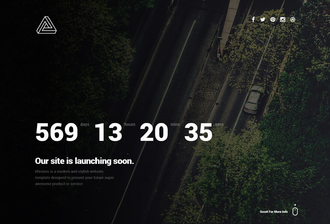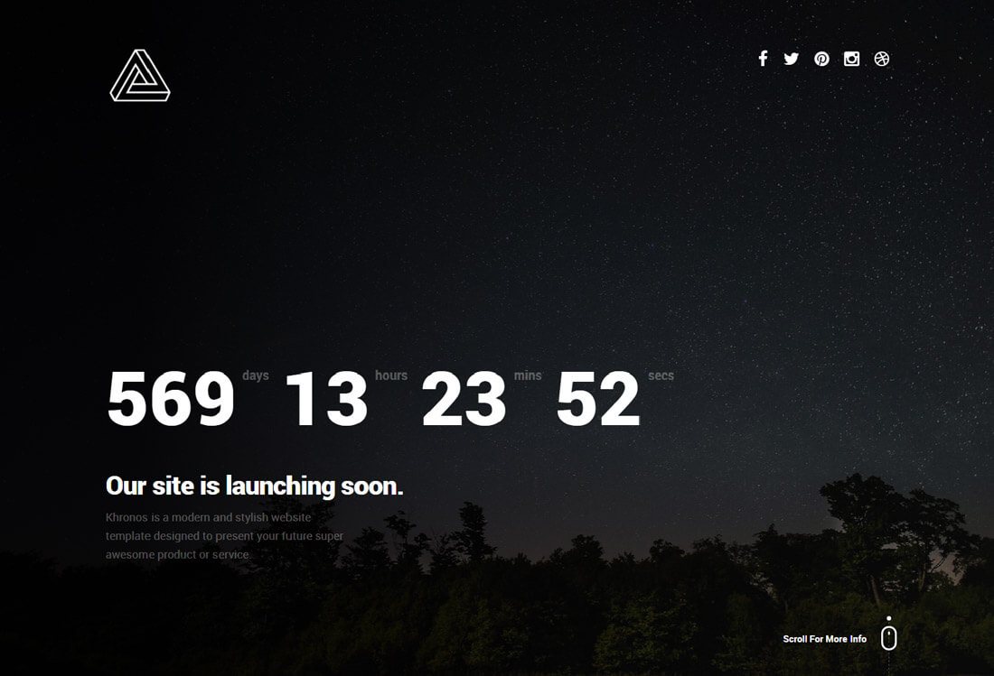 Khronos is a creative pack of coming soon template pages. It's elegant and clean design makes it perfect for every creative people, corporate, agency or anyone who is currently building their site and want to show a coming soon page in a creative way. Khronos is available in three style variations: static, slideshow, and particle background. It is fully responsive and retina ready, looks great on any screen and devices. It is also mailchimp ready and has a working ajax contact form.